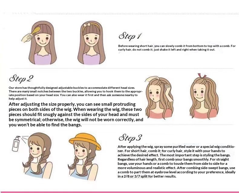 Wig Style: Long curly hair with a straight or side-swept fringe